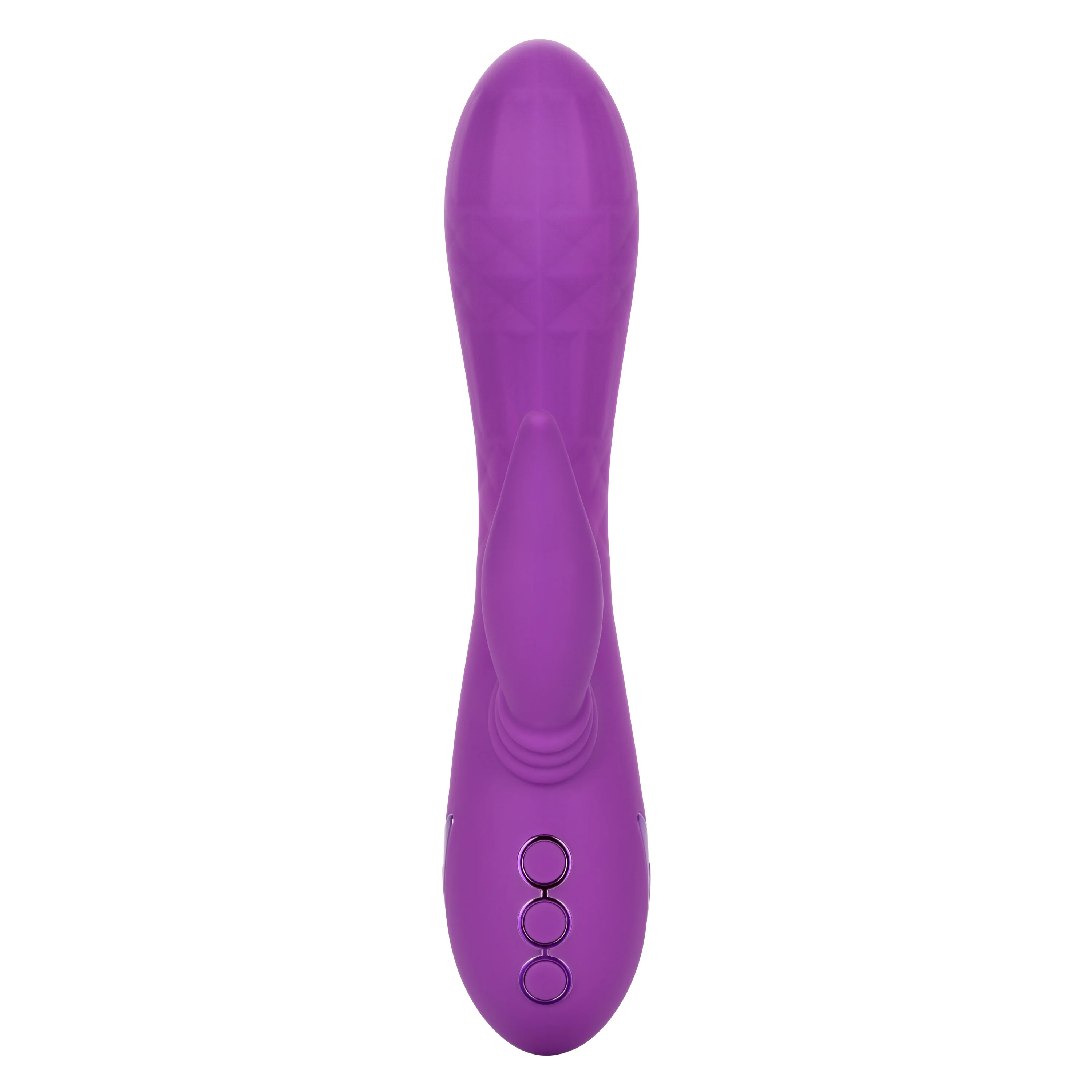 Give yourself over the your wildest fantasies and indulge in true pleasure with the vivacious California Dreaming® Valley Vamp. The luxurious rabbit vibrator has a one-of-a-kind side-to-side rhythmic stimulator for mind-blowing external stimulation. Experience pleasure like never before with the unique swinging teaser and 3 speeds of shaft vibrations.