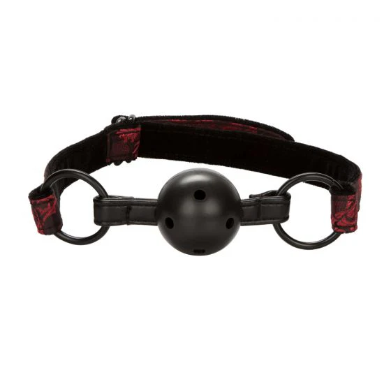 - Adjustable ball gag with ventilation holes for safe, comfortable wear